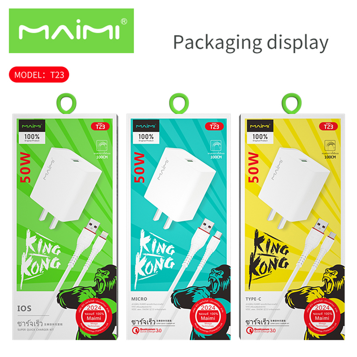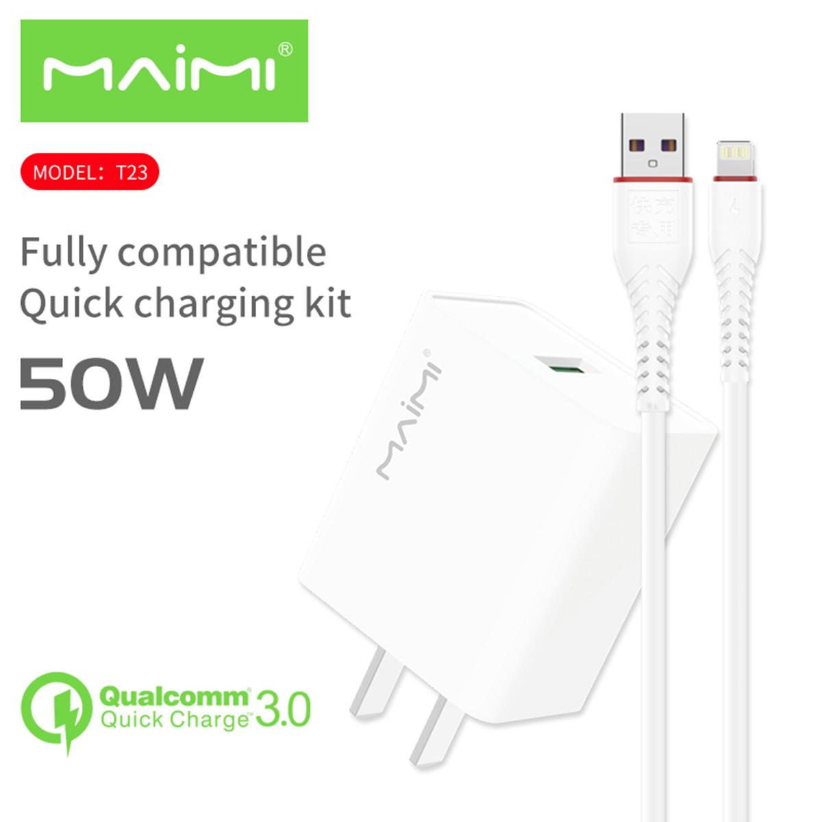 Maimi ชุดชาร์จ รุ่น T23 50W (หัวพร้อมสาย) สายชาร์จ Type-C / Micro USB / Lightning หัวชาร์จUSB 1พอร์ท สีขาว ของแท้100% สินค้ามีรับประกัน 1ปี
