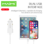 - Maimi ที่ชาร์จในรถ แบบ 2 ช่อง USB สำหรับชาร์จอุปกรณ์ต่างๆ เช่น โทรศัพท์มือถือ เป็นต้น