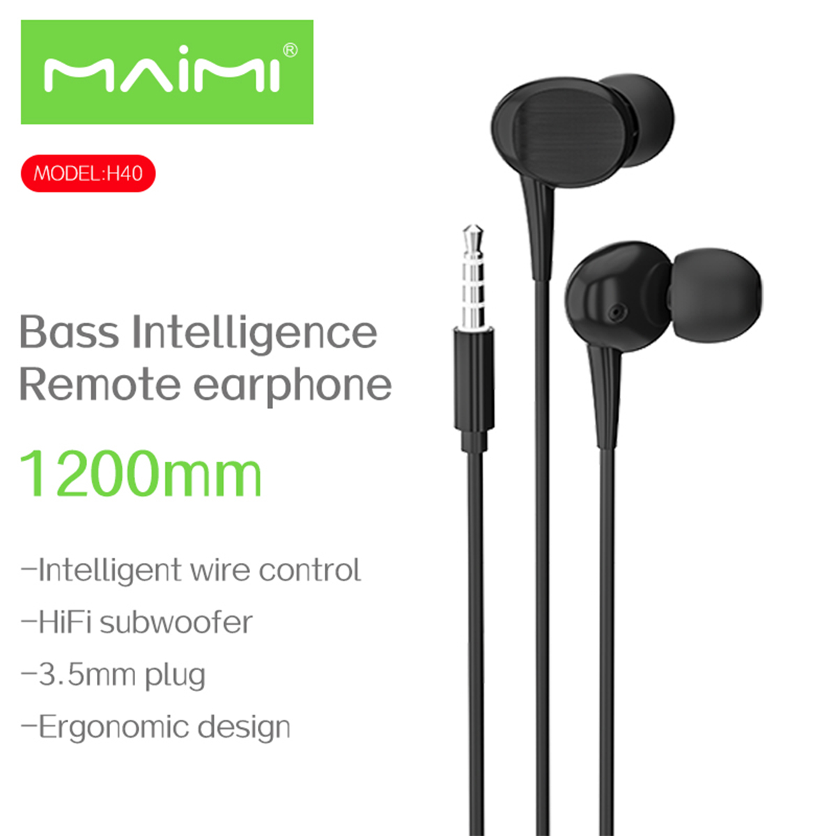 Maimi หูฟัง อินเอียร์ รุ่น H40 (สายเสียบ AUX 3.5) หูฟังแบบเสียบหู เสียงดี ปรับเสียงได้ เบสหนัก หูฟังสเตอริโอ สีดำ สีขาว ของแท้ 100% สินค้ามีการรับประกัน 1 ปี